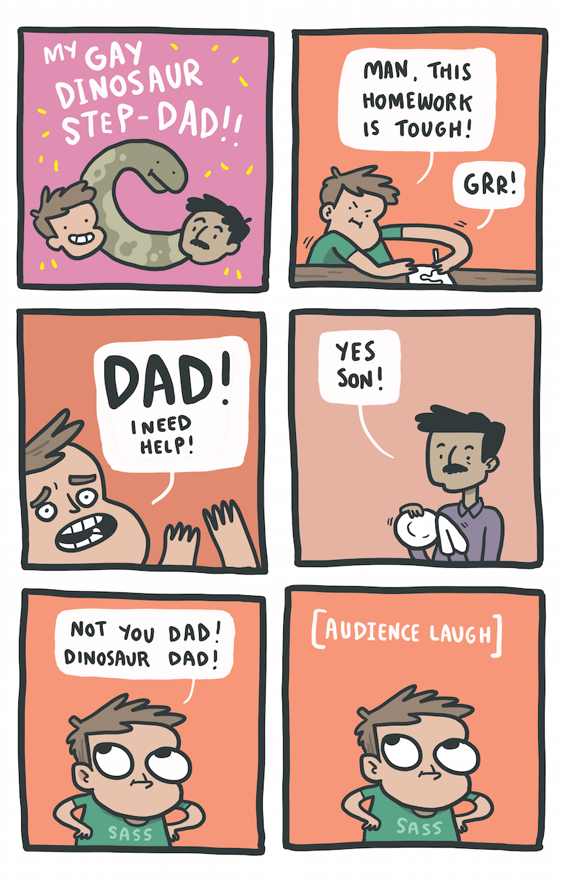 Next time on "My Gay Dinosaur Step Dad": the son has a bully at school. It's revealed that the bully's dad is the dino-dad's ex-boyfriend, a t-rex named Harold. Dramatic hilarity ensues.