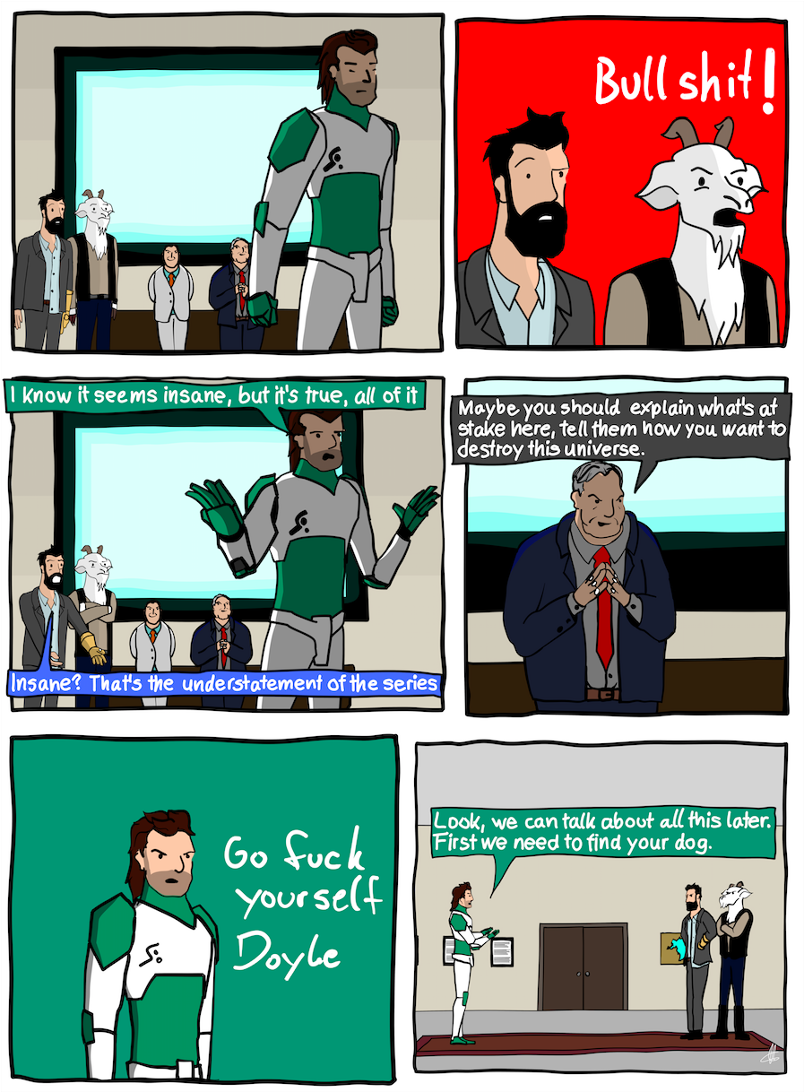 Based on the Podcast of the same name, The Weekly Planet revolves around James and Nick finding themselves in situations that only could be born from an over the top Comic world, which they actually are in. So that's fitting.