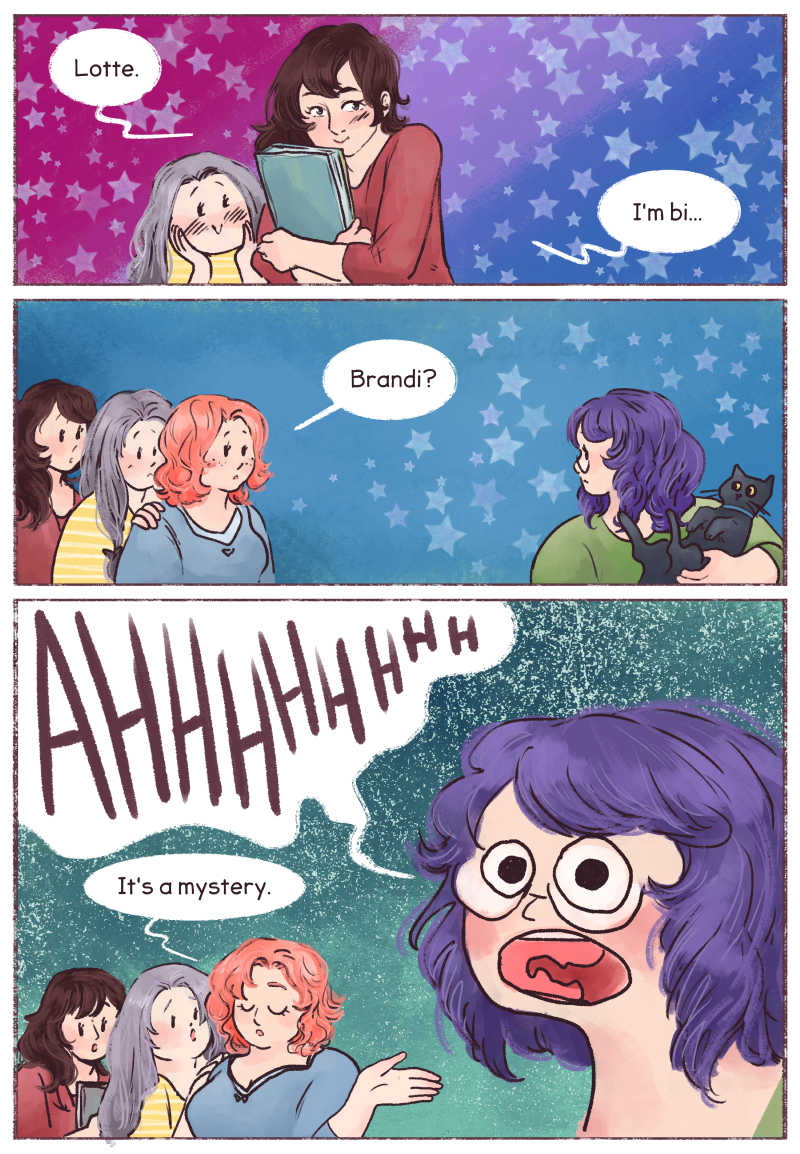 A lot of resources portray not knowing and questioning as things you go through on the way to finding out who you /really/ are, but the truth is that so many aspects of relationships and orientation are murky, unknown, and confusing, even if you've known about them for a long time. And oh boy do I have more to say about that next time, and through the rest of this Snug Orbit story arc.