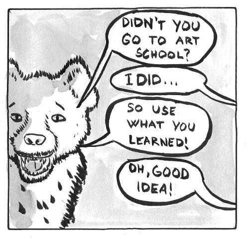 I sometimes talk to my comics.... Oh, also, this Hyena was suggested by my aunt :)