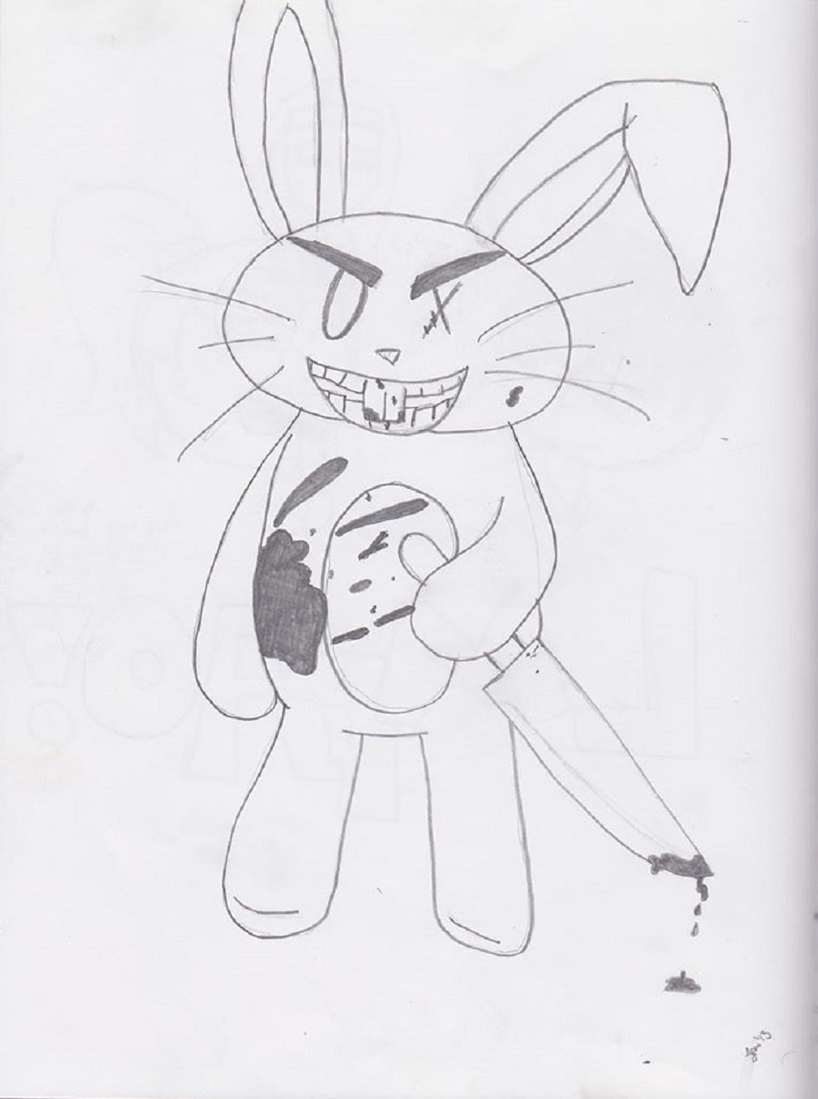 I tried to imagine what Scrappy would look like if he were a demented killer rabbit. And, Killer The Bunny was born. B requests more of him quite often.