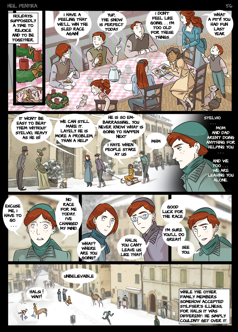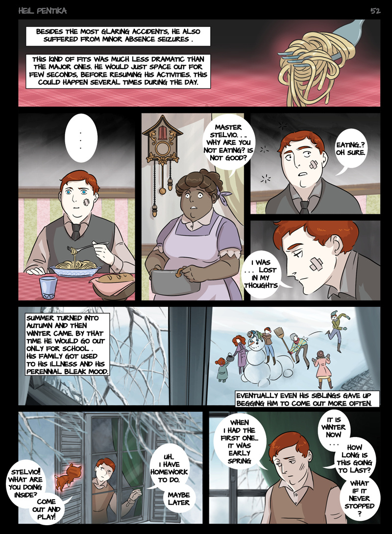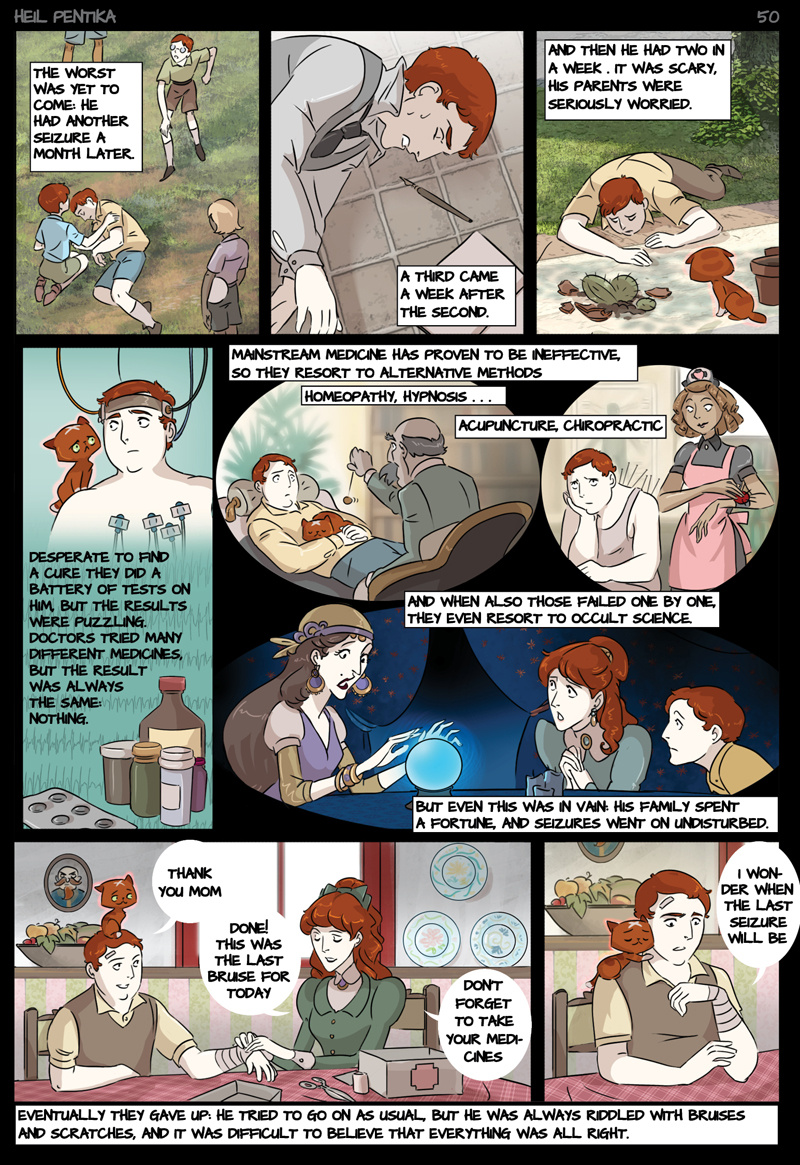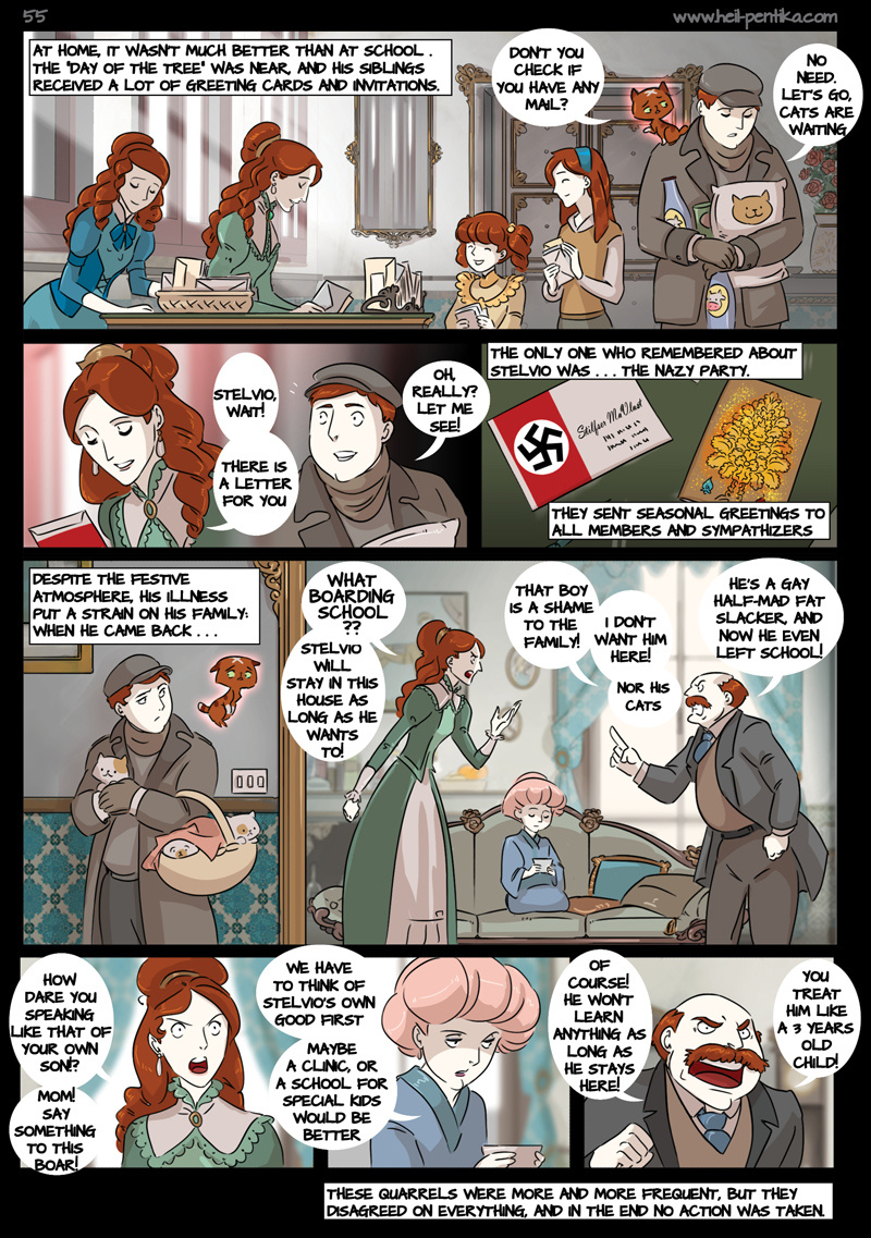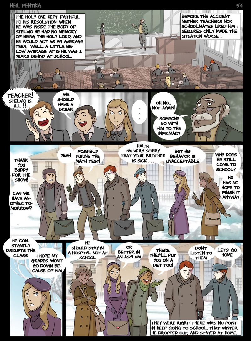 The Story of Heil Pentika tells of the last descent of the Holy Lord on earth. Here he enters the body of a 12 years old boy, Stilfser MaVlast. Unaware of being the Holy one, Stilfser grows up, goes to war and joins the Nazy party, becoming one of its main leaders.