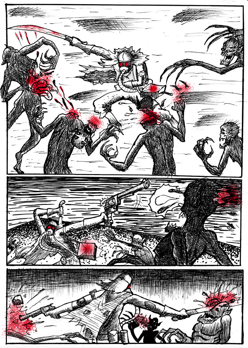 I simply take an A4 sheet and drawing whatever comes to mind without thinking too much and not plan anything, then try to give some consistency in the following pages to continue the story ...