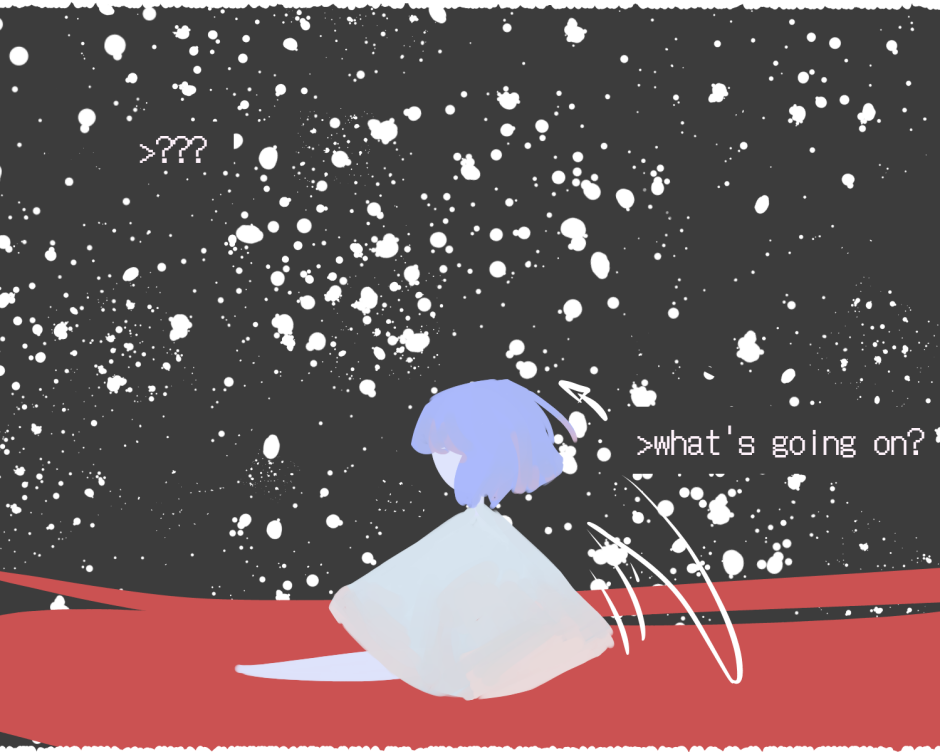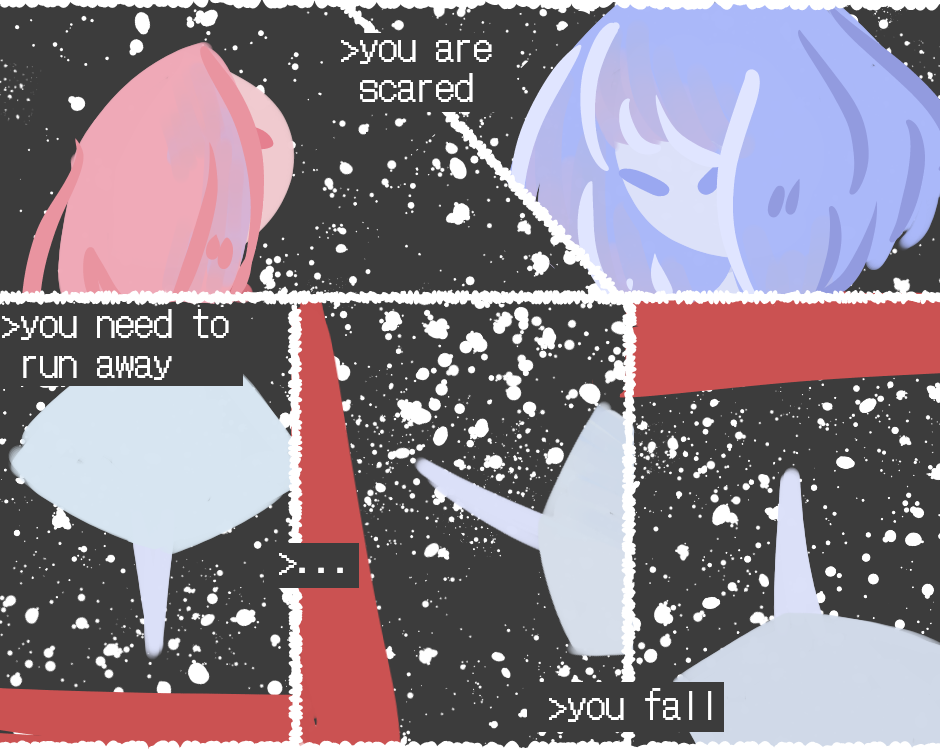 >what’s going on? Do you: >keep falling >greet her >attack her