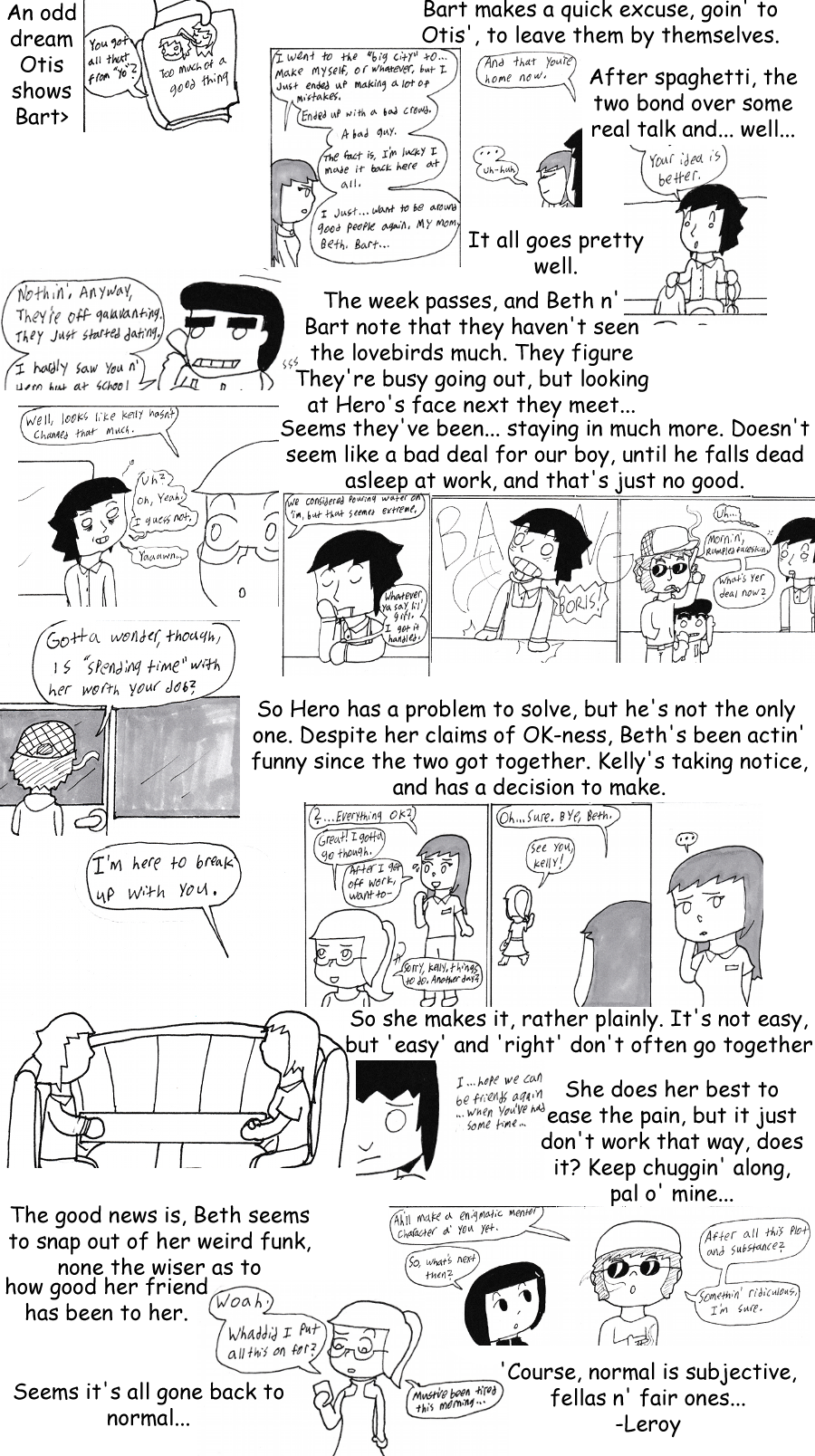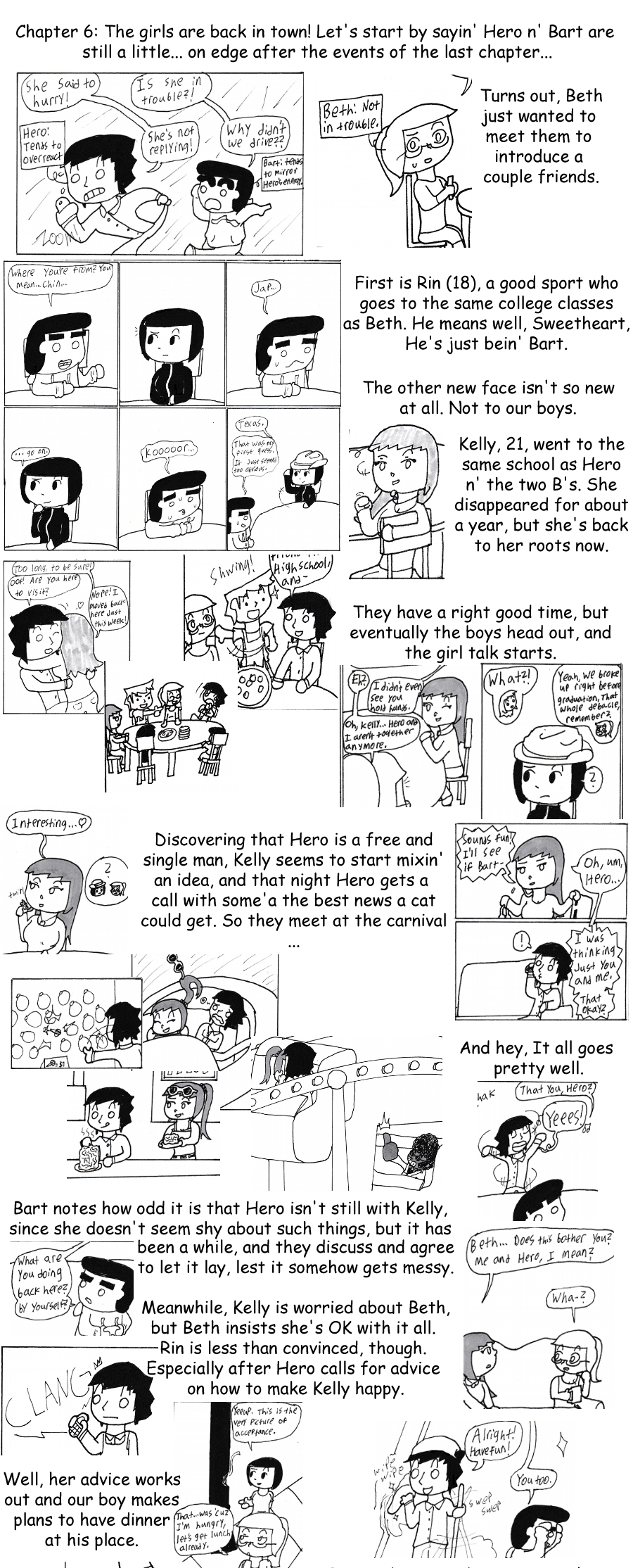 This chapter was really hard when I was making it. I just had so much trouble figuring out where to go from week to week once I had the basic set up. Reading through it to put this page together, though, I realize it actually came out pretty good. Difficulty breeds quality?