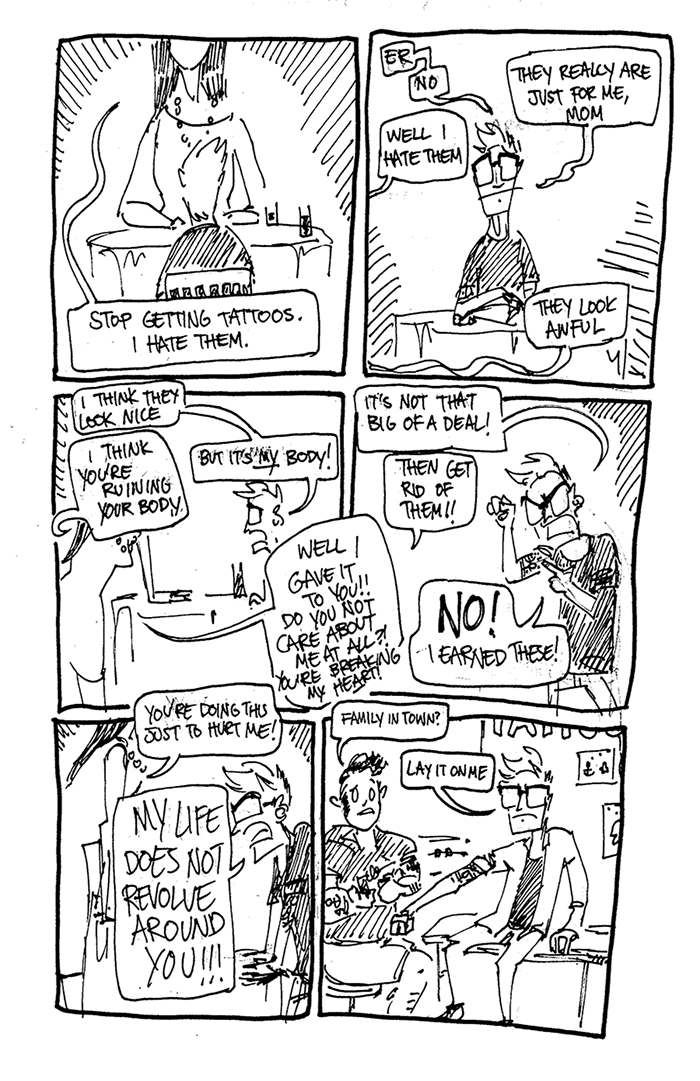 Though my mom is no where near as intense as yours, I feel ya. I figure I'll just squeeze all the tattoos and piercings I want to get when I'm 18, and a broke, suffer college student.