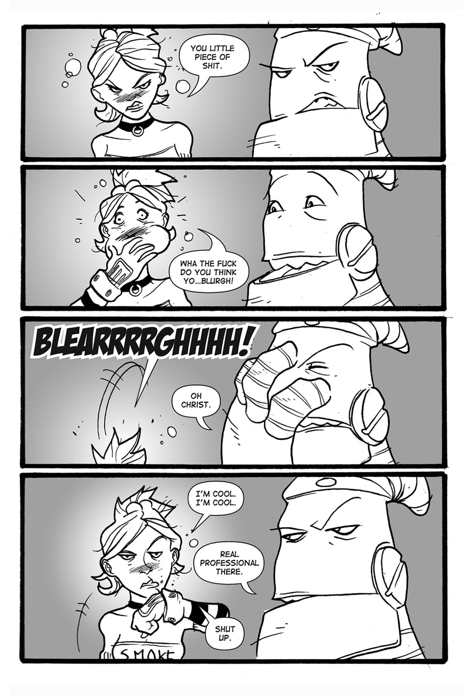 A long time ago, in a galaxy far far away…well it wasn’t THAT long ago, I mean it wasn’t like yesterday or anything…wasn’t like that far away either…wait…let me start over. These are the adventures of Sandy, a smart mouthed girl with a lust for cash, and Angus, a robot in cargo shorts with some anger issues, and how they go through the galaxy doing whatever it takes to make rent on their 3 bedroom spaceship, “The Millenium Trollop”.