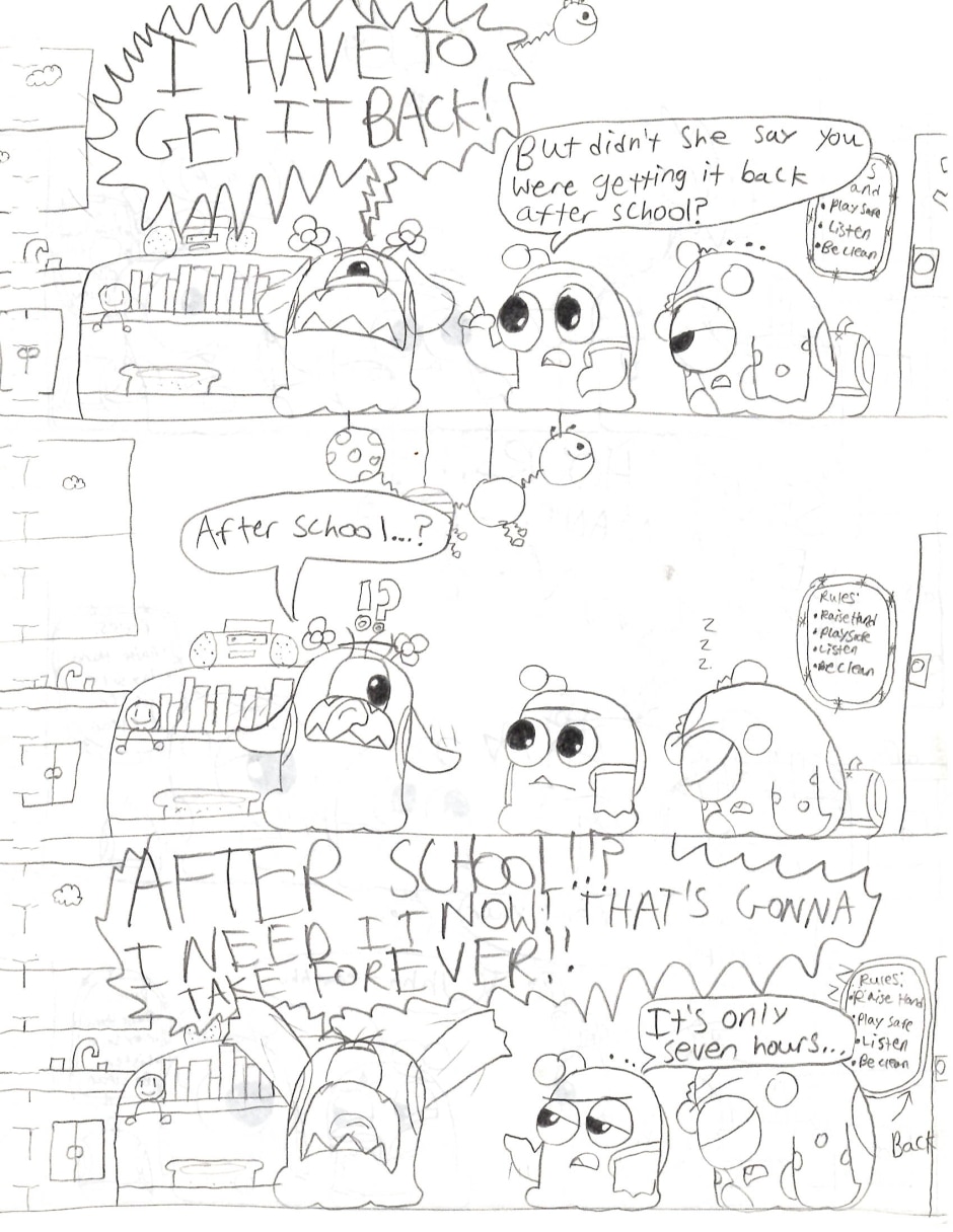 When Dorothy gets her brand new phone taken away during class, the monster trio use up Recess to retrieve it. However they come across some dark secrets hidden inside Ms. Staplecrunchs' desk.
