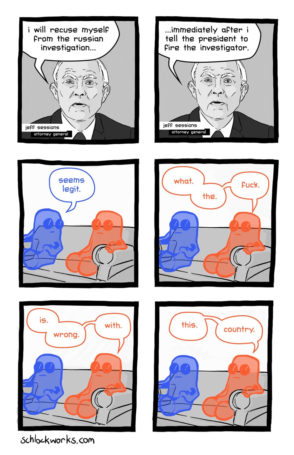 As for the topic at hand, this is mind-blowing. I don't know if collusion occurred between the Trump campaign and the Russian government. I'd like to think it didn't happen - the thought that someone could be that evil and stupid is somewhat beyond me - but either way, the process needs to play out. No matter how you examine the situation, firing the person who is investigating you is horrible, even if you're innocent. Especially if you're innocent. When that investigator happens to be the guy who helped usher you into the White House by investigating your opponent, matters only become more complicated. When your own attorney general - a man who recused himself from the investigation due to personal involvement with Russian officials - the situation enters cluster**** status.