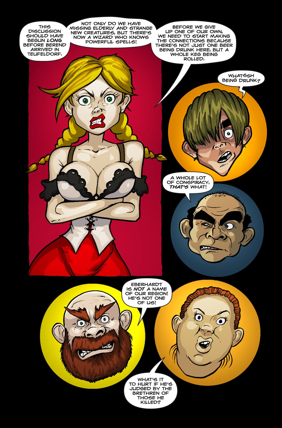 Berend Eberhardt just wanted some relaxation and the quiet life of a blacksmith when he moved to the small town of Teufeldorf. Unfortunately for this hulking-mass of a man excitement always comes knocking, and when he finds a map on the dying thief Shrat, a simple treasure hunt opens up the doors to Teufeldorf's past and sets Berend on the path of fantastic adventure.