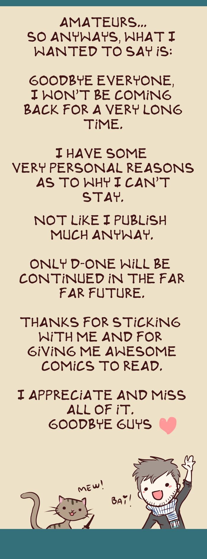 Thanks for supporting me always and for those who have comics I read, thank you, you have all been great influences and have taught me a lot. >u<