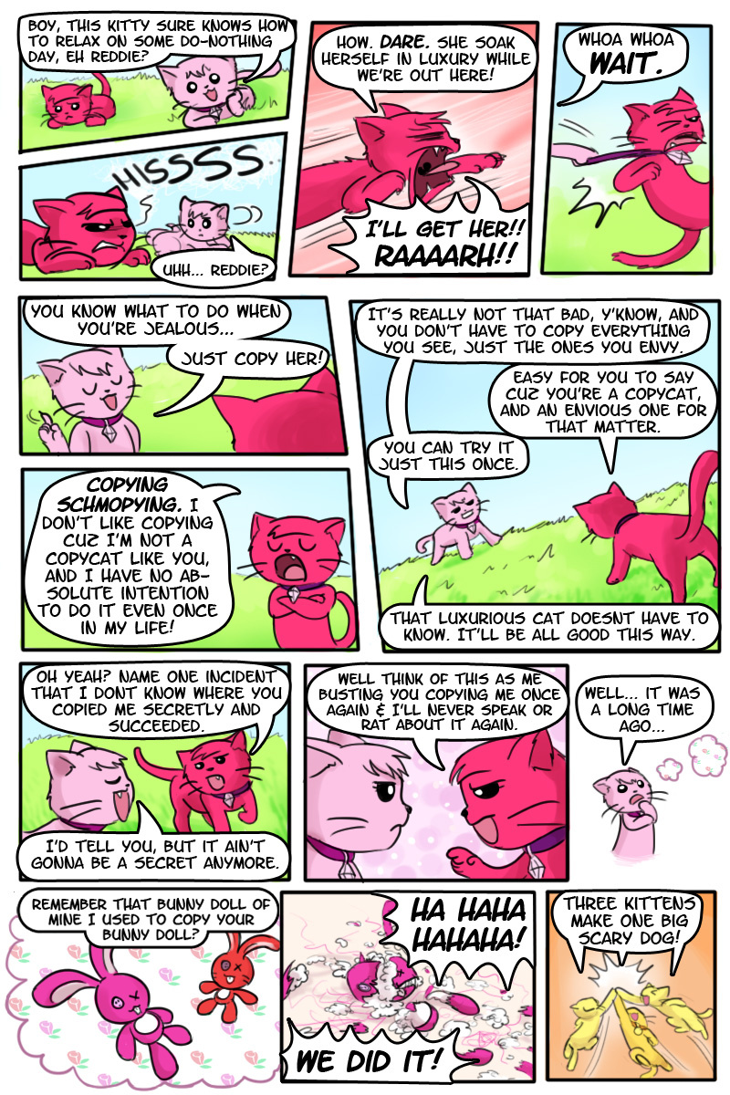 Meanwhile as Pinkers and Redmagenta start to get along as regular friends, they found a new envy/copying victim, and that kinda brought their friendship closer.