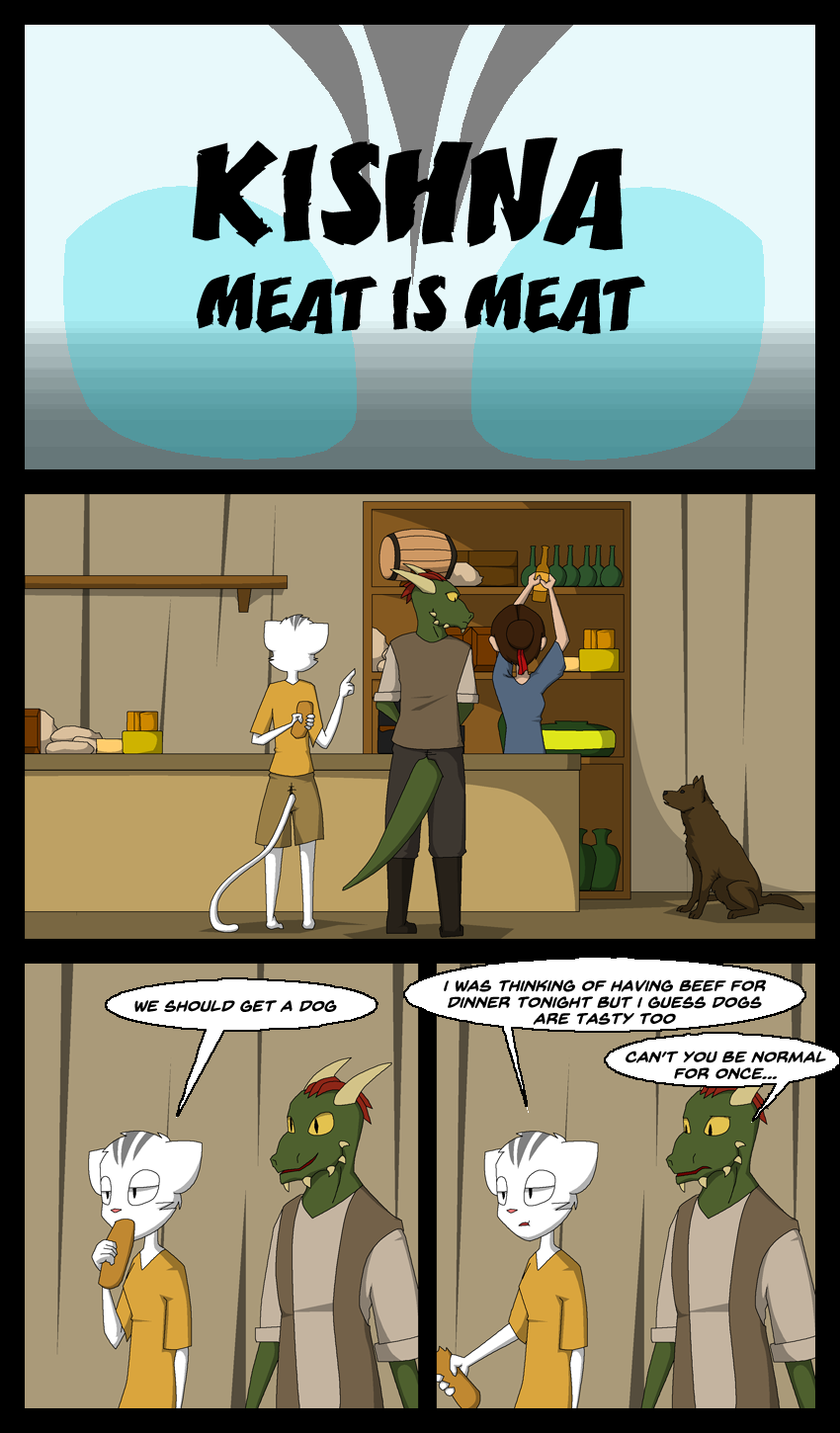 I got confused in the panel where the cat was taking a bite from the bread. Was it the cat talking about getting a dog?