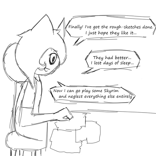 Ditto becomes so sleep-deprived she's begun to talk to herself. (you also get to see the 'rough-sketches she's talking about :3)