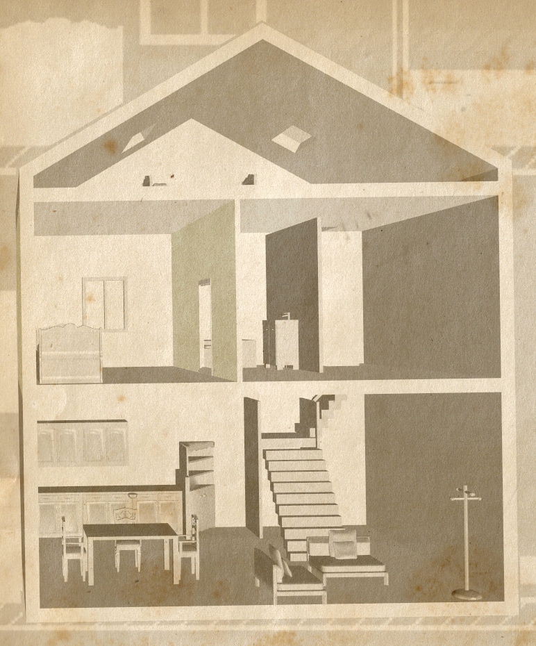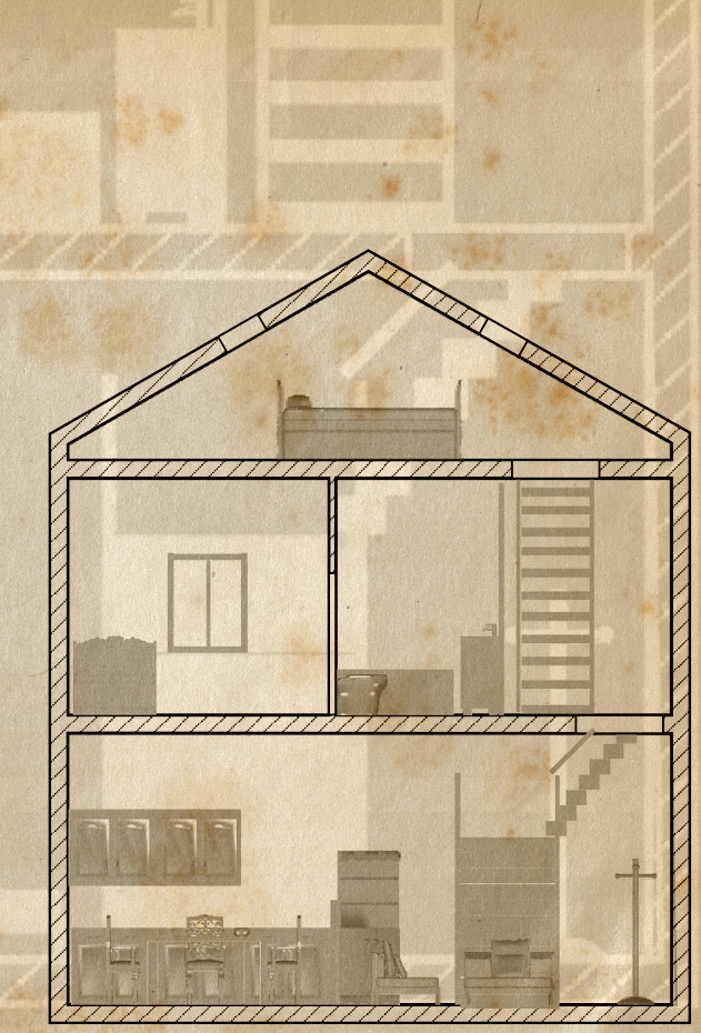 here is the full little Miss P house for you, a nice section to let you see inside... yes I built it 3d because I had nothing better to do apparently and fun part is the program I used doesn't let you easily built up 3d models you can watch on the vertical section, so I literally had to build it on the horizontal surface having to turn around all the furniture, but I have to say the final effect looks nice right? XD I mean somehow...