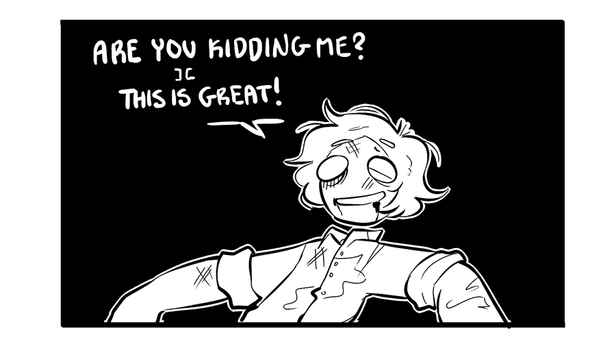 You fool! We need to squeeze every comic idea out of Jim BEFORE you kill him, follow the plan!