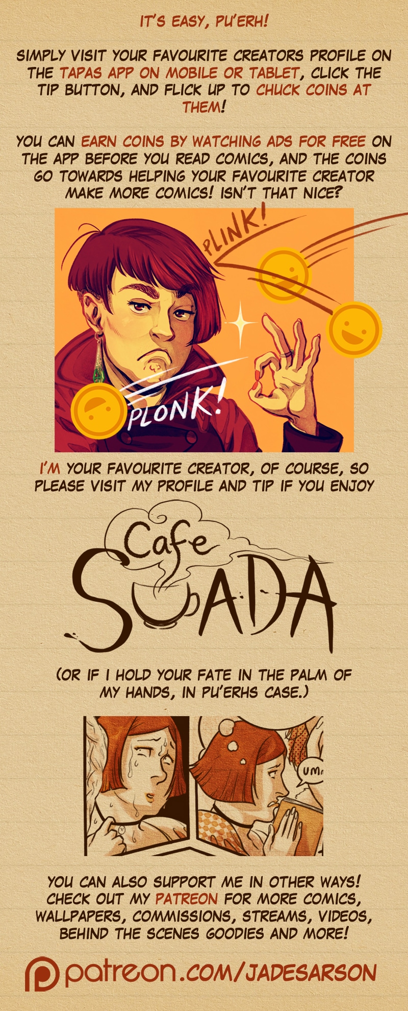 Just a helpful comic about the tipping feature on the Tapas app. Consider tipping your favourite creators!