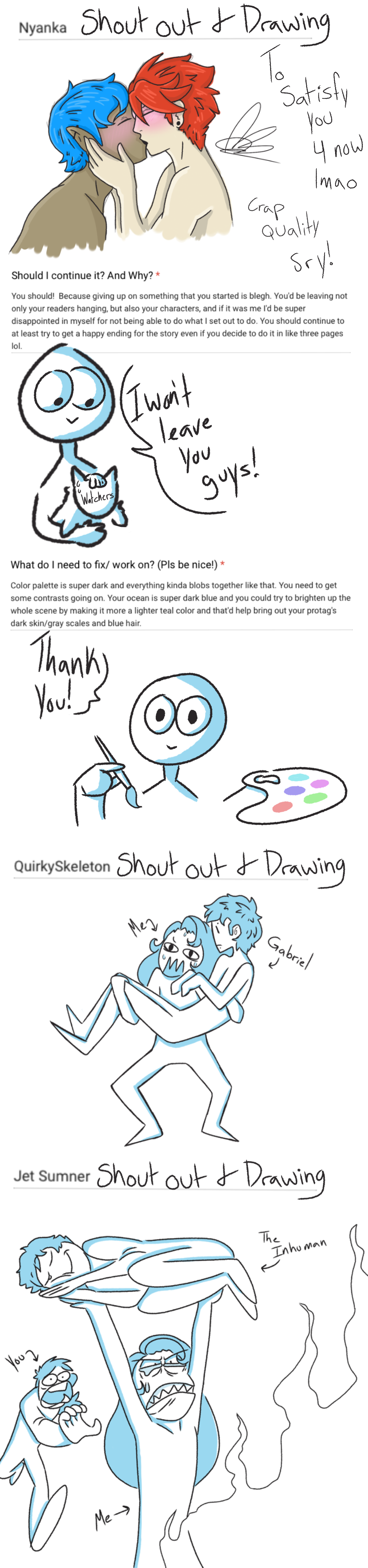 Last drawing: I and Gabriel don't get along very well... some times. Ok... so this is whats happening... don't get upset because NOW I have a plan. I didn't before!