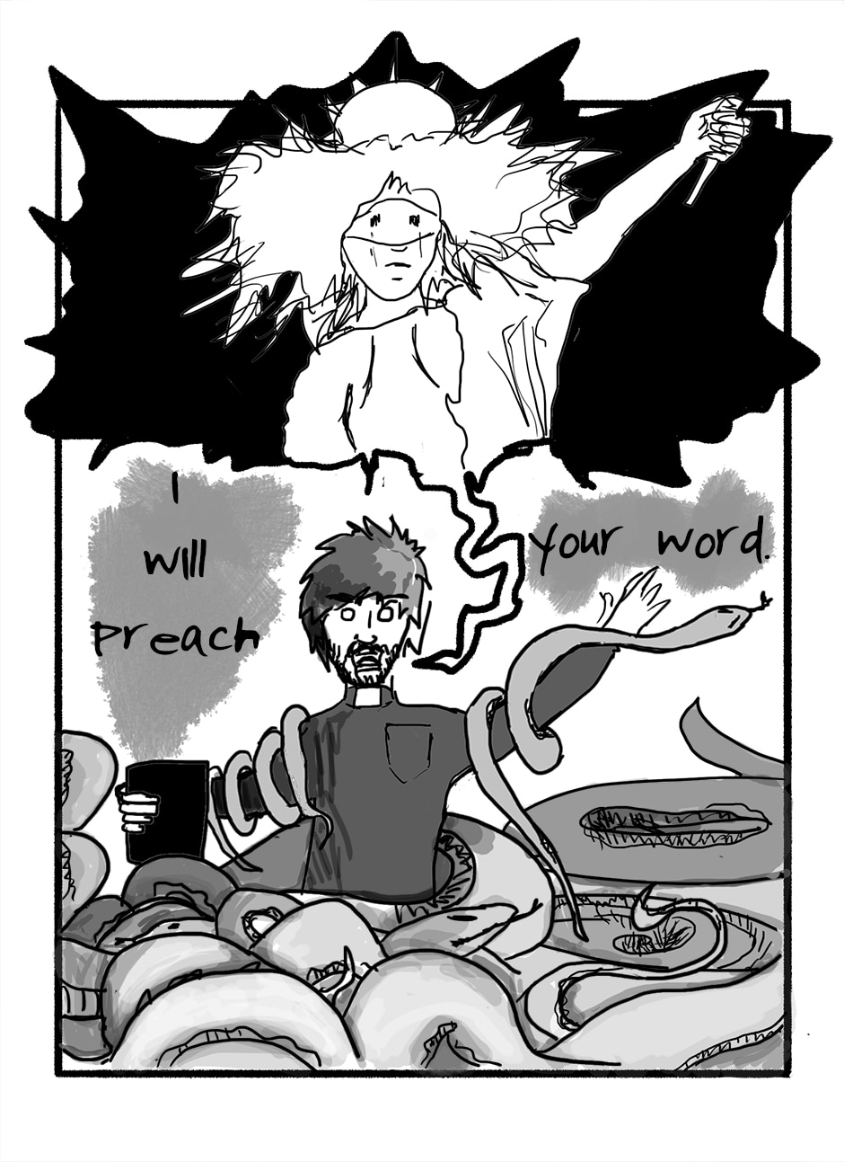 #Comic #comics #Graphic_Novel #impressionism #religion #philosopy #Delusion #serpents #Blindfolds #blindfolds_aside #lady_justice #Lady_Justice #preacher #Bible #david