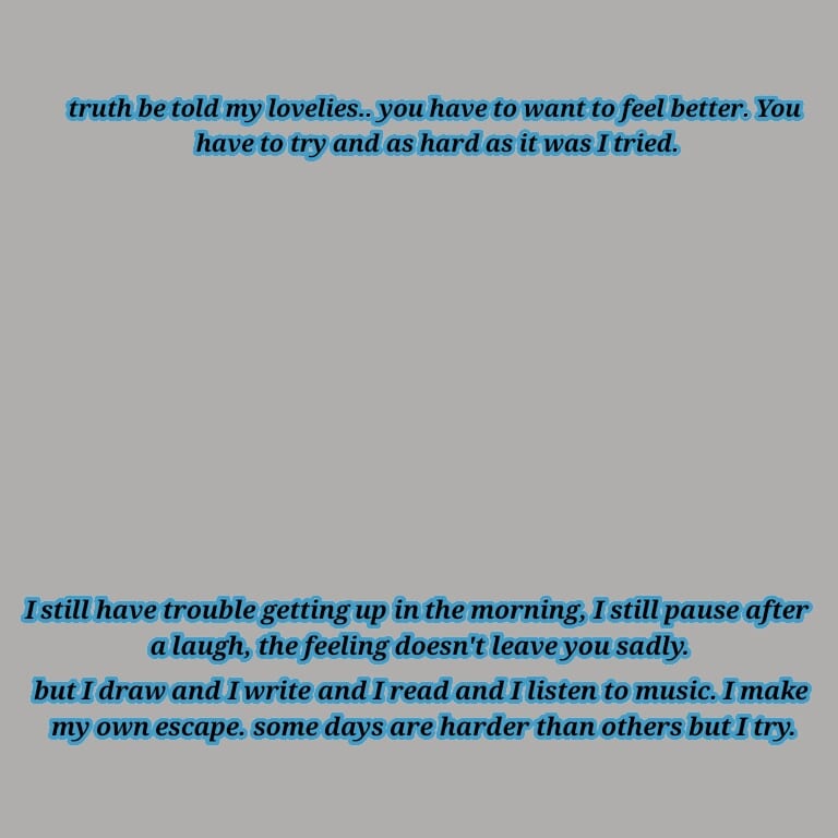With that being said I would like you all to know that I am here. You can always talk to me and trust me when I say you will find support where you least expect. Never be afraid to say how you feel.