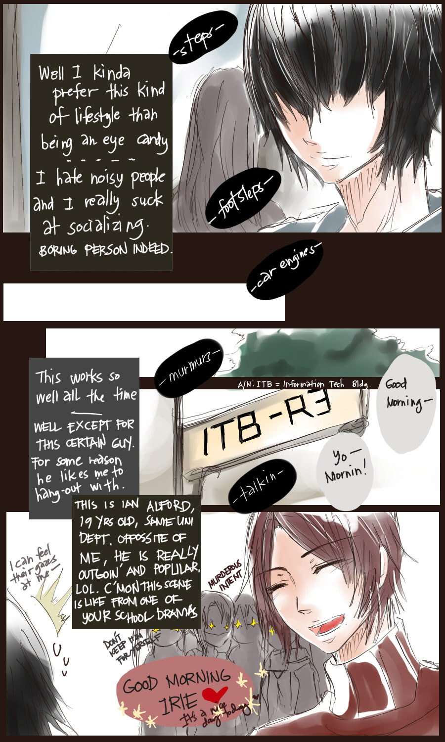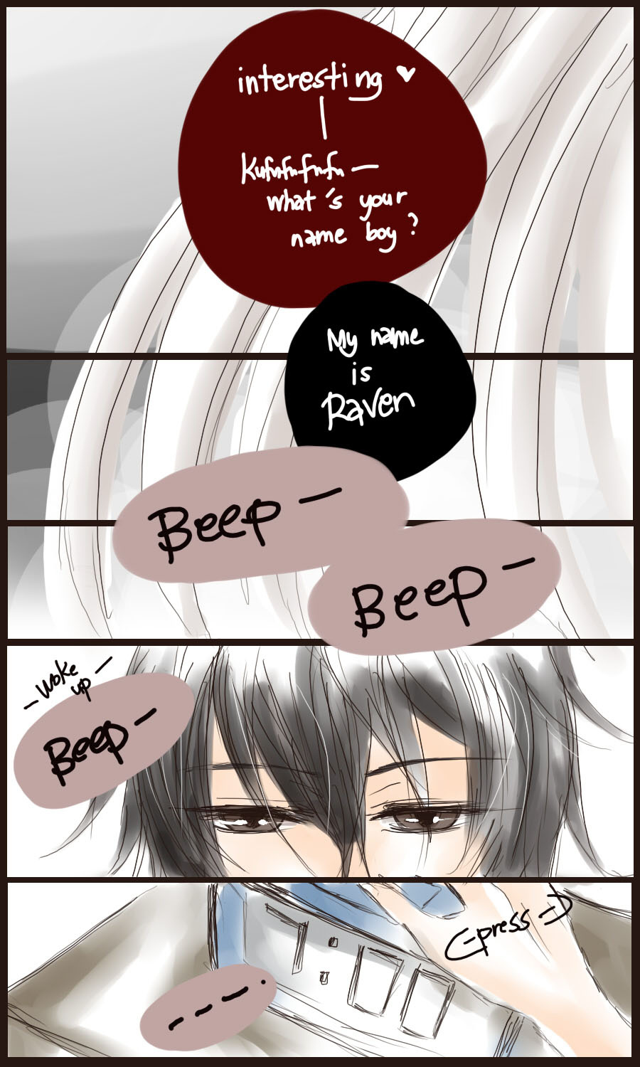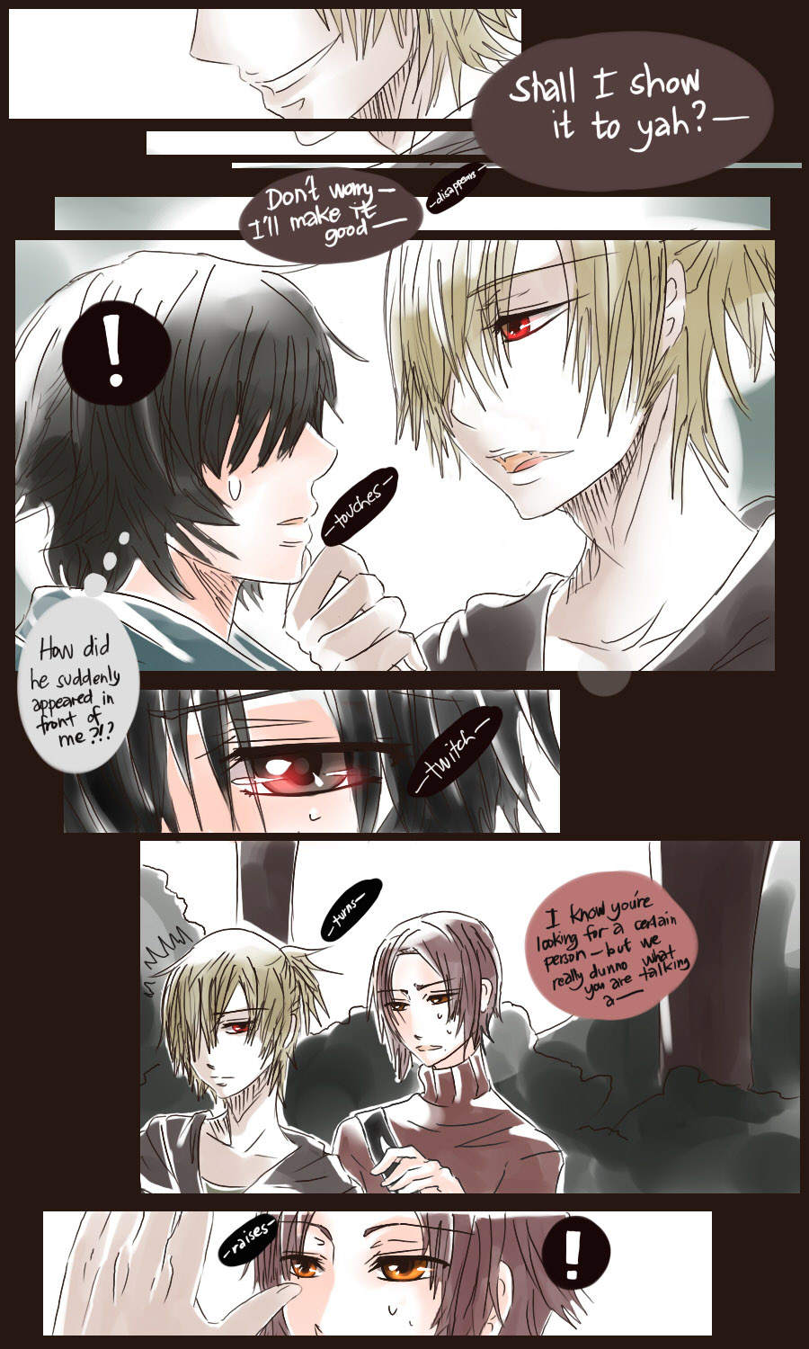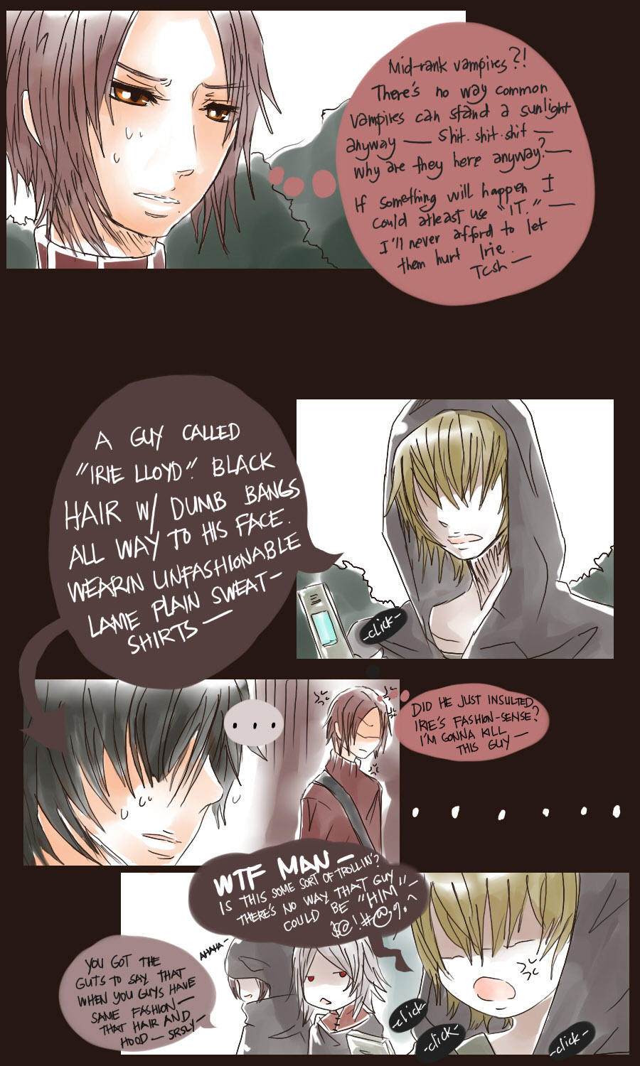 A bl/yaoi sketch webcomic that revolves around Irie Lloyd, a supposed-to-be normal 19-year old college student, turned out to be a reincarnation of "Raven". Raven is one of the oldest noble pureblood vampire known as the Black Bird. His bestfriend, Ian, who turns out to be an Astral Fox. The cat he's petting for years, Lily, who turns out to be his old familiar back then (a cat demon spectre). And the wolf who he sealed for long time, Lyall, who turns out to be his past lover. What will happen to Irie's normal human life? Would it remain the same? What are the secrets to be told about his own whole-being?