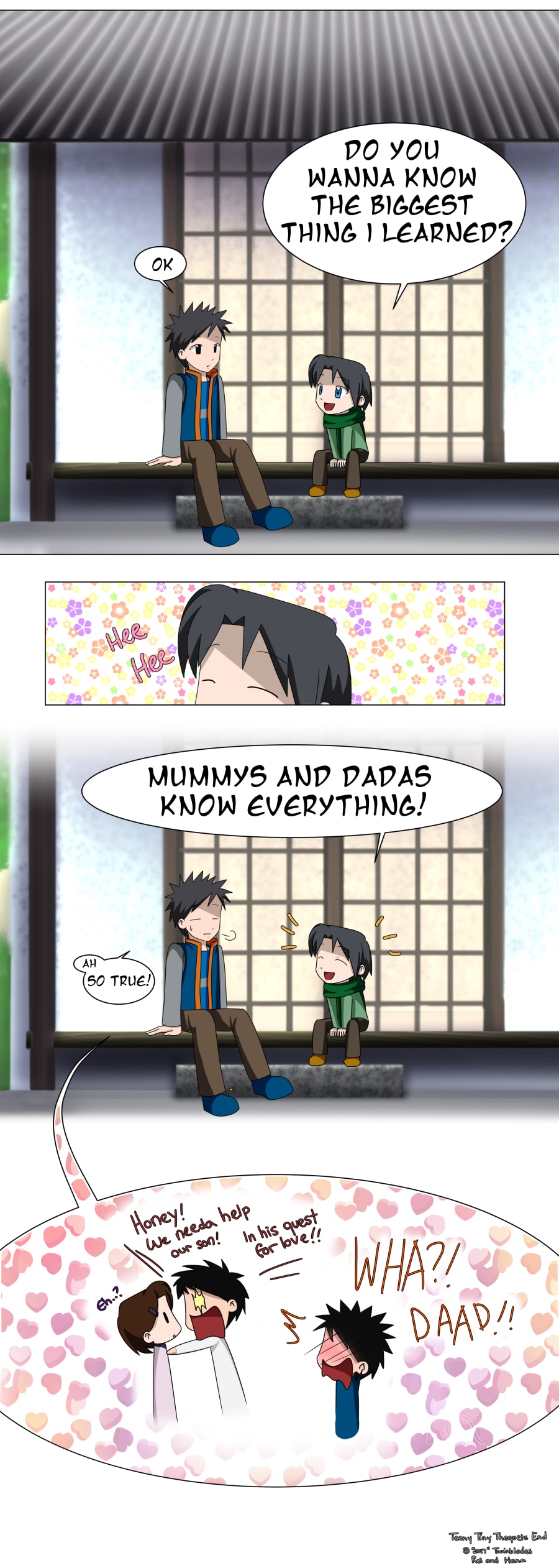 Welcome to our Bee Happy Card Shoppe, run by two sisters working together in this "co-op". Branching off from Twinblades Studio, (https://tapastic.com/episode/389066) we share here more short stories that will hopefully warm your heart.