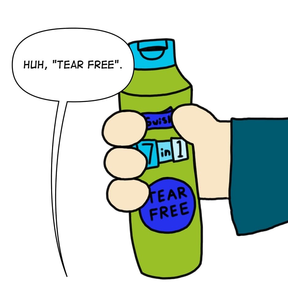 I've actually seen tear-free shampoo that came in a pouch. Which you have to tear to use. It's things like that that kill my trust.