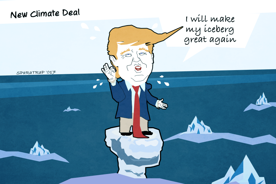 After the decision to quit the Paris agreement about climate, Trump took the place of the polar bear in the WWF campain for climate changes.