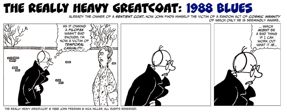 As real-world events impinge on our ability to bring you the original Greatcoats from 1988, some currently missing in action, a bizarre temporal accident has taken over this strip...