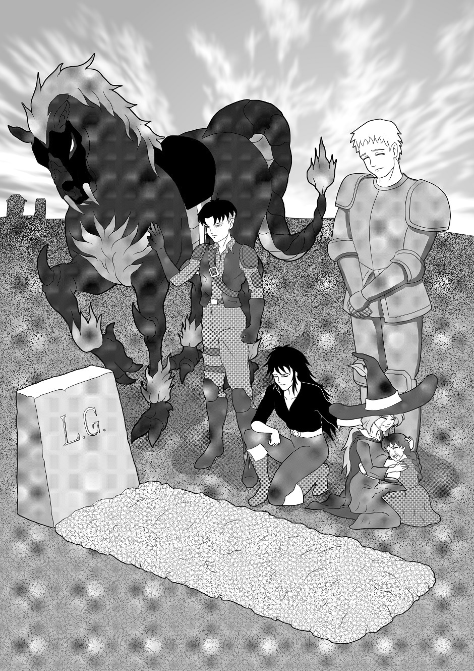 the first picture (scene at grave) is irrelevant to the story....