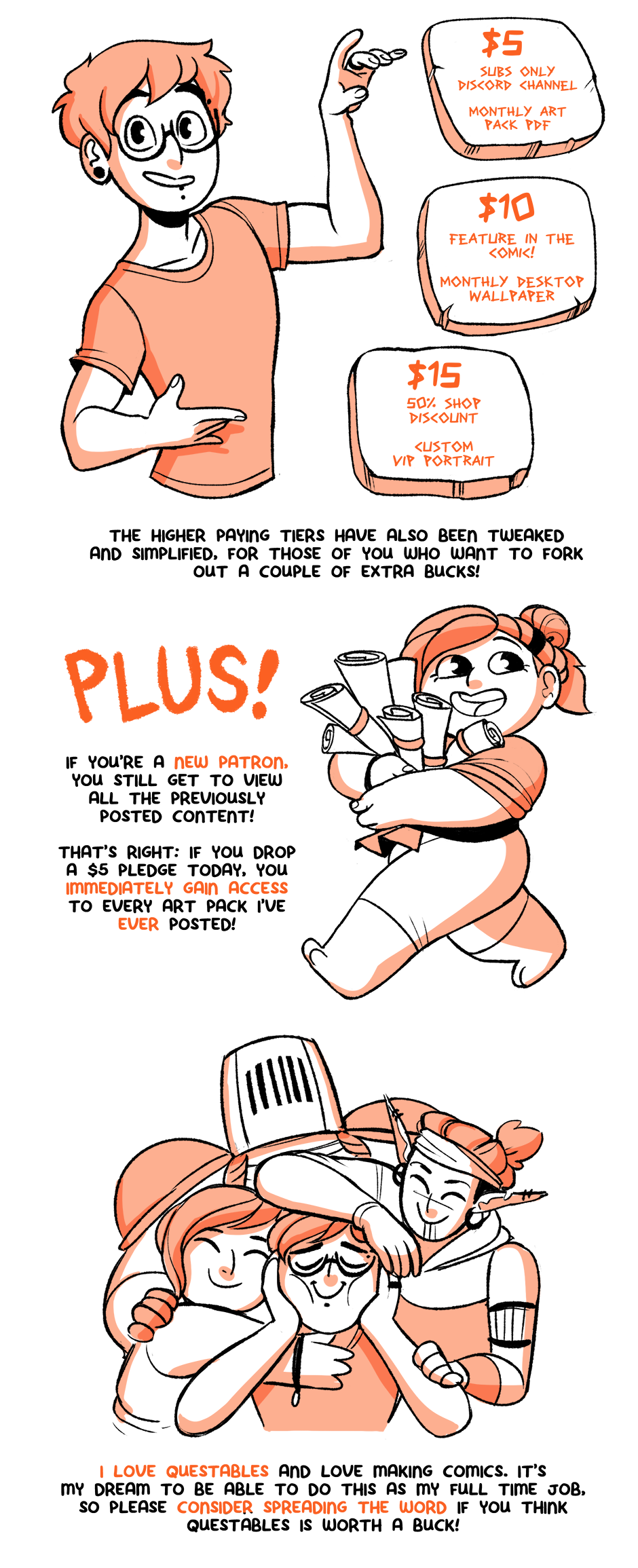 I've made some recent changes to my Patreon page, to help make early access more accessible! Please consider telling a friend and spreading the word about Questables and the Patreon rewards program, as every dollar goes a long way. Don't forget there's also heaps of higher end rewards like cameos, discounts and art packs!