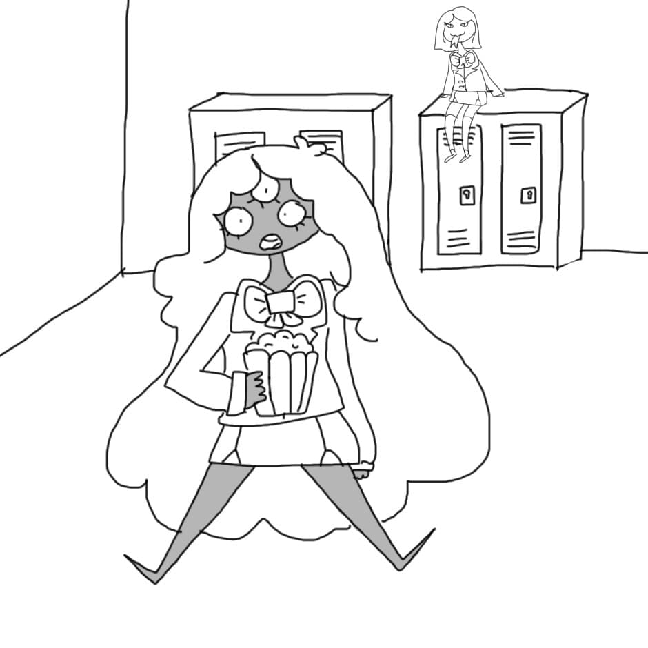 I love how the three eyed girl is just eating popcorn
