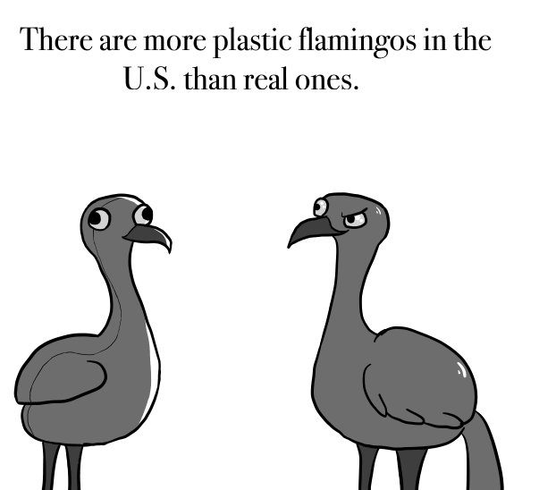 Probably because plastic flamingoes are a popular yard decoration in the U.S while there are few if any places where you can find wild flamingoes in the U.S.