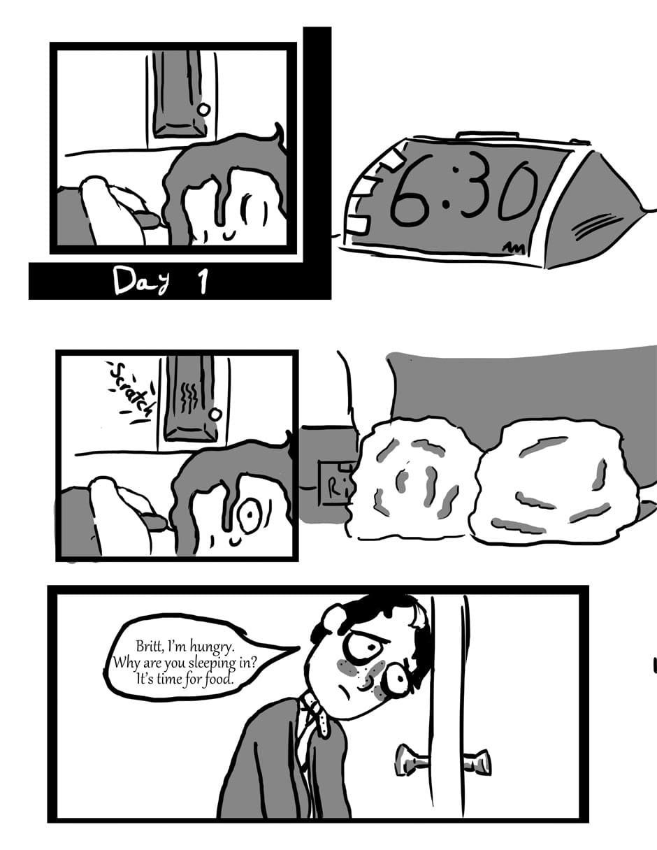 Britt, wake up. I want food. Why are you sleeping in?