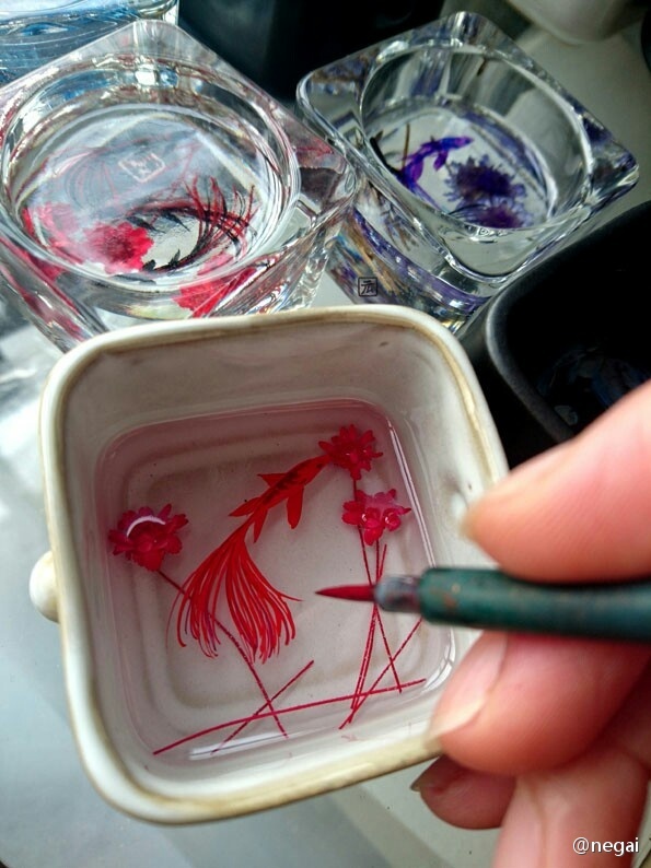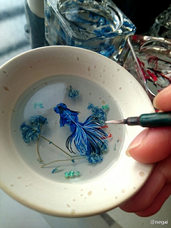 Each artwork is pure handmade and are carefully painted by Hiro. The stunning three-dimensional paintings were created by layers of resin and paint to create depth.