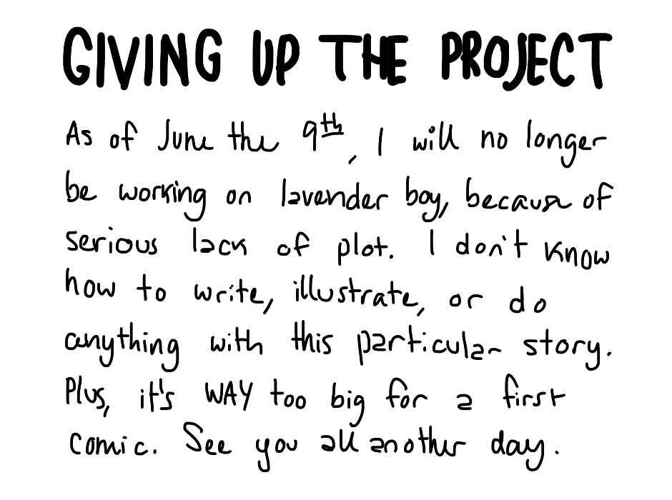 As of June the 9th, I will no longer be working on Lavender Boy, because of serious lack of plot: I had nothing to write about these characters, except for a love story. Perhaps the characters will make an appearance in a future project, but not a comic. Or at least not one of this scale(Which I can not handle for now)