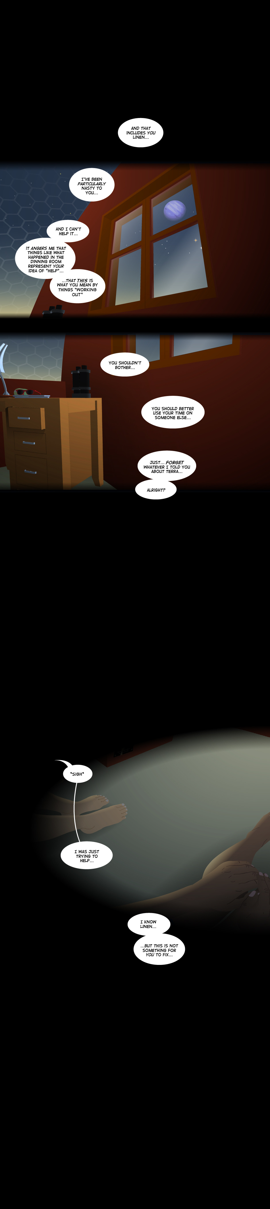 In a way this episode marks the end of the Terra story arch, if we could call it like that. Of course, that is not to say that Cyan is "okay" with that whole issue from now on. Oh no. No sir. But at least by now I can more-or-less promise that the story shifts gears somehow. For one thing, it is daylight at last! Woohoo! 12 story-days of sunlight without a pause from now on.