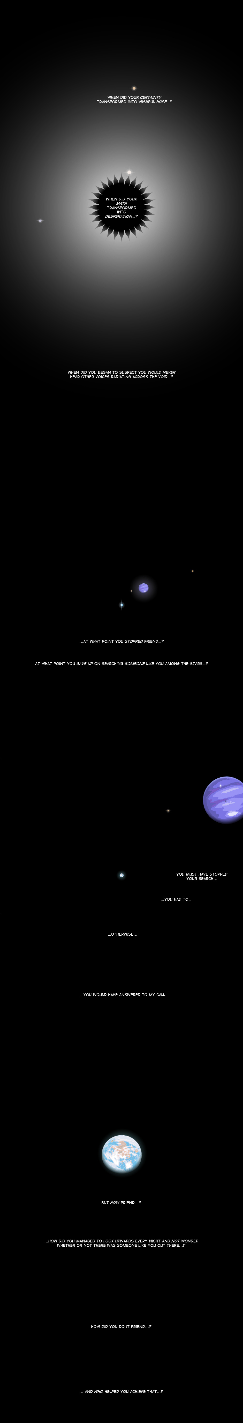 As always, thanks a lot for tolerating this little project of mine. It has been progressively hard to write and draw these things as I dwell deeper into the plot. In the last episodes I've had this feeling that there's something "off" that doesn't quite fits as well as with the first 3 episodes. A fact that I am sorry about, whatever the cause is. If it was for me I would dedicate at least 3 weeks per episode, but then again, I want to finish this sometime this decade.