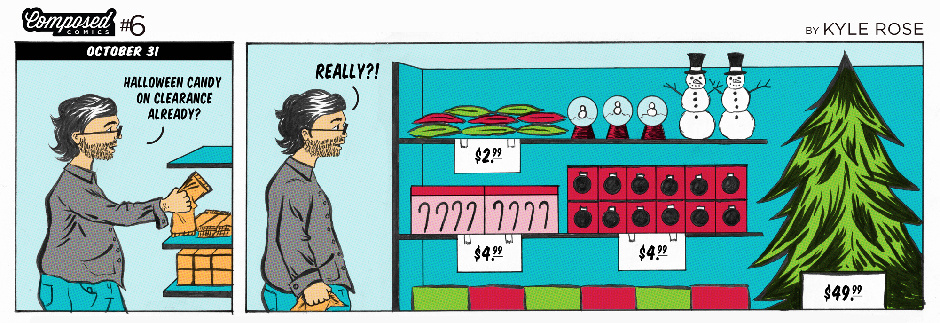 Composed Comics are memoir style journal comics by Kyle Rose. They are about working as an advertising designer, living in New York, being recently married and making webcomics. But mostly they are about trying to say something profound through the little moments in life.