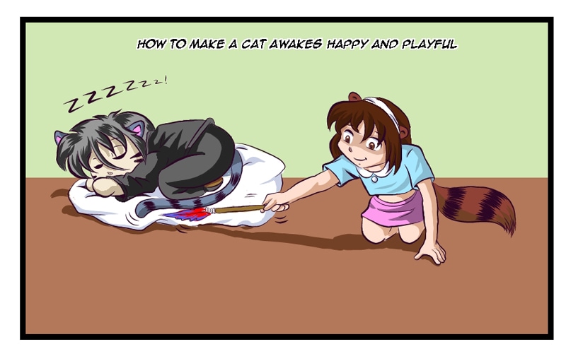 Haven´t you realized when you awake a cat sleeping they look at you like if they want to kill you for interrupt their majestic dreams? Well, Tanuki Girl found a way to make them awake really happy! XD