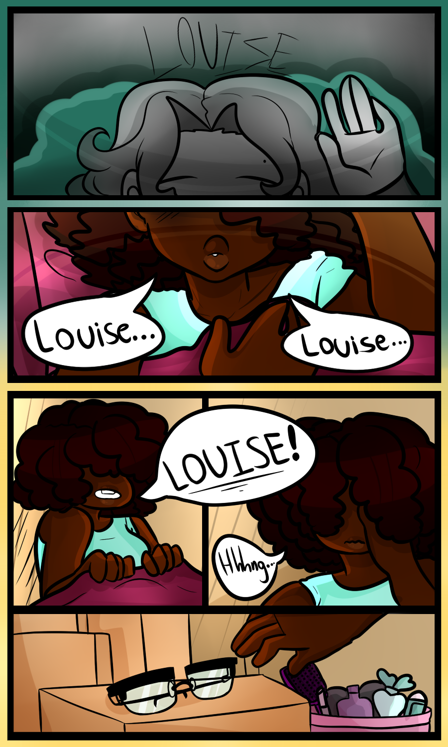 I LOVE YOUR COMIC ALREADY! And also, me and her look almost the same! I have brown, short,wavey hair, glasses, and dark skin. the only thing is that im Really tall and have lighter skin