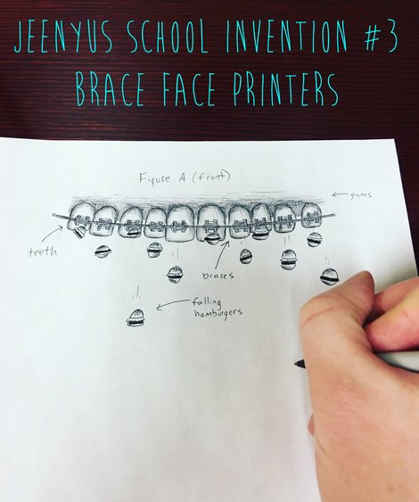 Forget your lunch again? No worries, just think of the food you want, and your braces will begin printing the food right into your mouth. Warning: don't think of spiders or roaches.