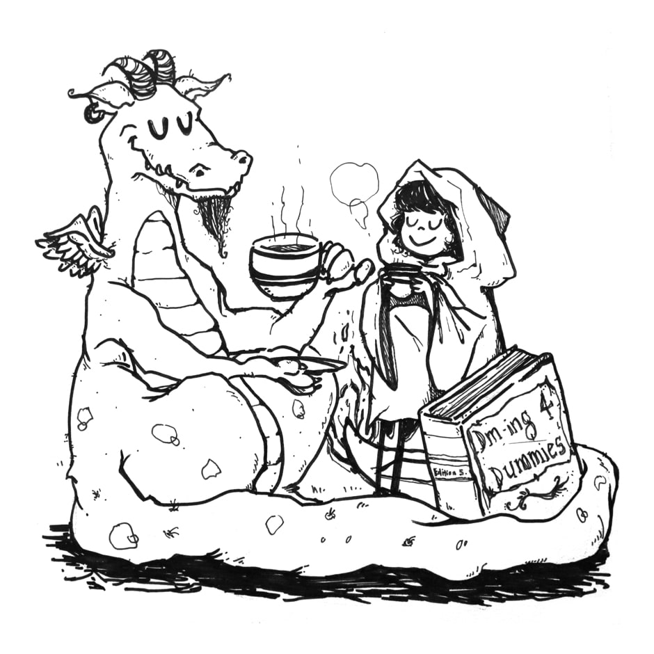 Guess who got lazy ><… No comic this week but I’d like to share some drawings I did for Jeannette for RPG Day. She was a Dungeon Mistress for 2 tables during the event - so proud :’). These are a series of illustrations I did on the folds of her DM screen.