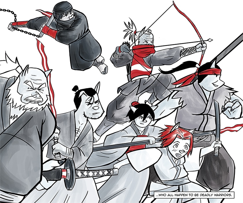Hamurai is set in a fictional Feudal Japan inhabited by humanoid pigs some who are capable of wielding bacon like swords, like a bacon katana or Bacotana.