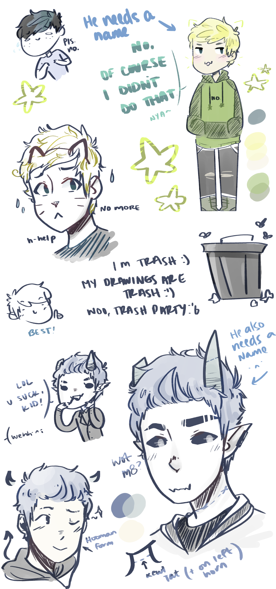 I'll post the second part of the doods next week :P + Idk how to draw hands, for god's sake xD + Give lil cat boy & demon dude a name ;w; + dRAWING THAT PROFILE PICTURE WAS HELL. ok I'm done :)