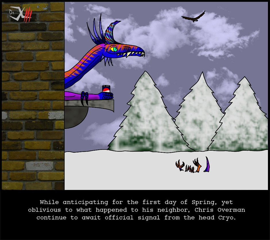 While anticipating for the first day of Spring, yet oblivious to what happened to his neighbor, Chris Overman continue to await official signal from the head Cryo.