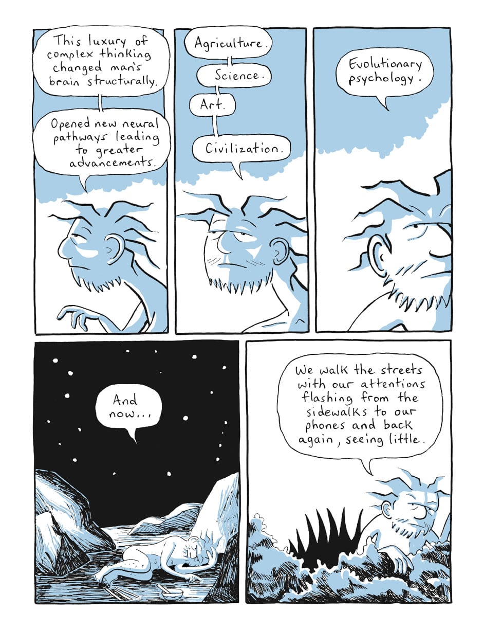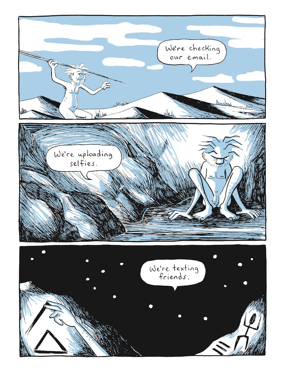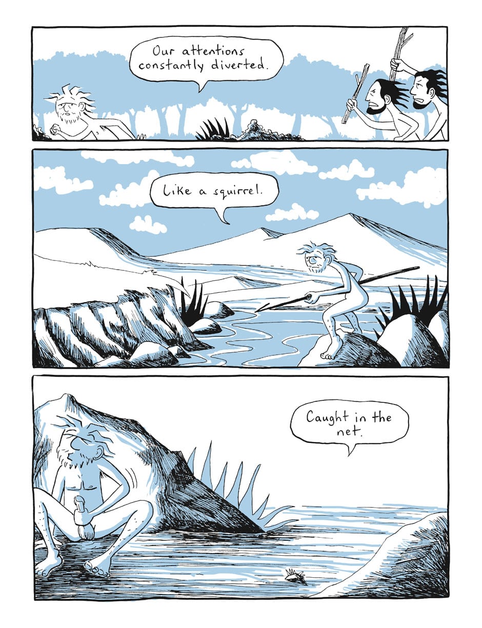 the last panel the caveman grab his dick to masturbation