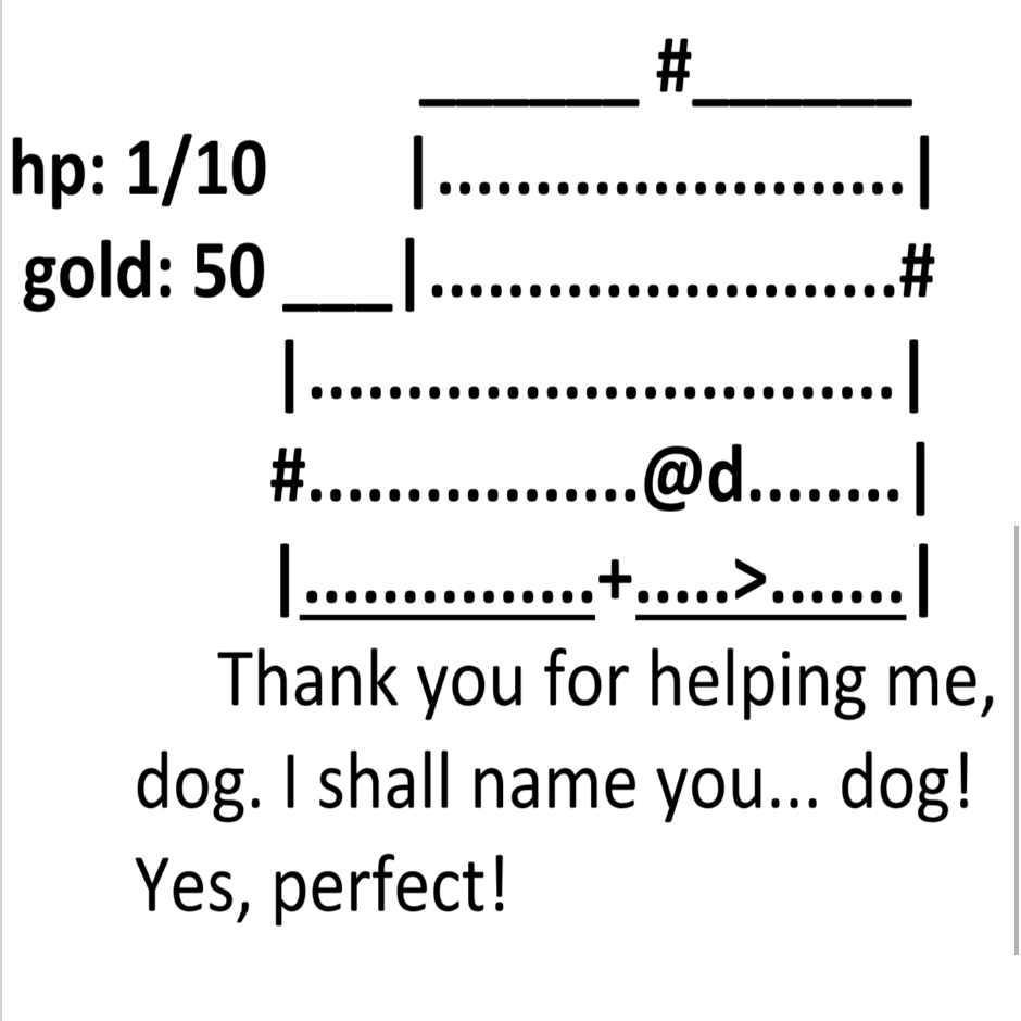 A simplistic ASCII dungeon crawler comic in the style of the old Dudley's Dungeon comics. The comic will go through the life of an adventurer in an ASCII dungeon crawler such as Rogue or Nethack, but is sentient and aware of this fact. New to this adventurer business, it knows nothing about what awaits it in the dungeons but knows one thing and one thing alone, it will die, and it will try again.