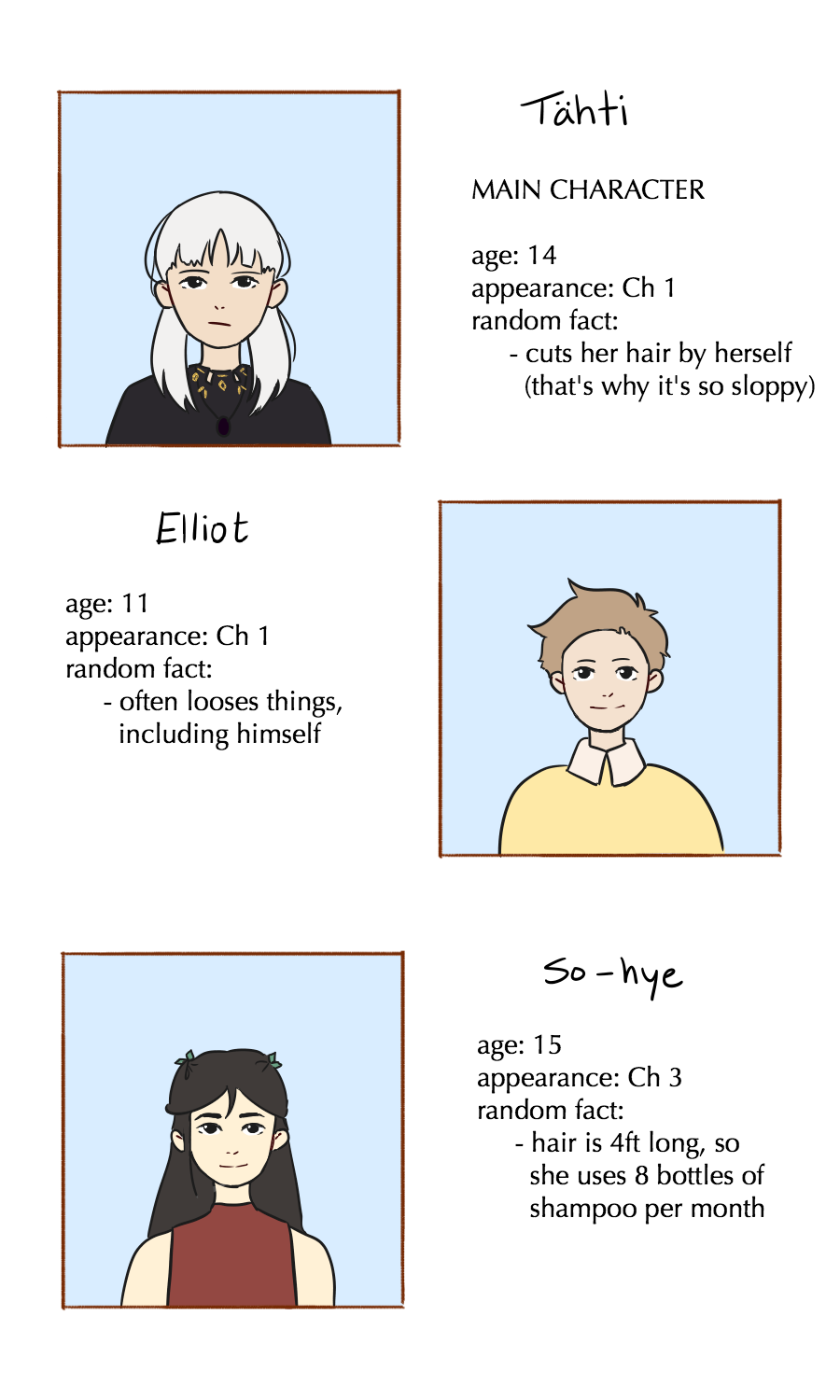 Ch 1: pg 6 + character bios