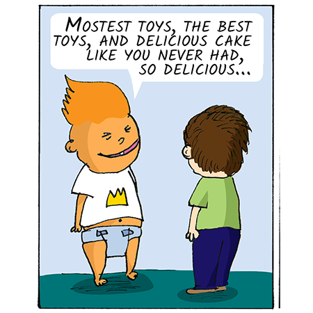 DictaTots is a bemused sociopolitical satire inspired from the actions and words of real live people recast as tyrannical toddlers.